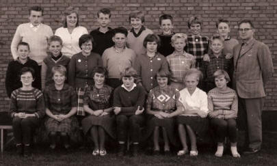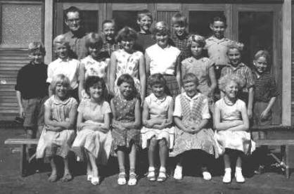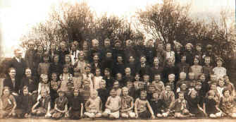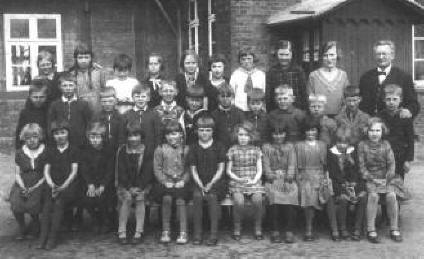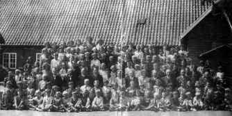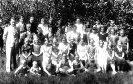 ![]() Grethe Skram blandt hele skolen og sogneråd 1933 |