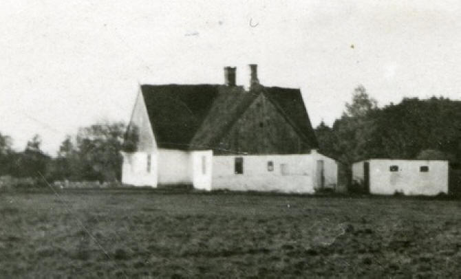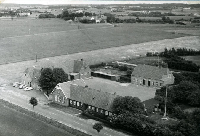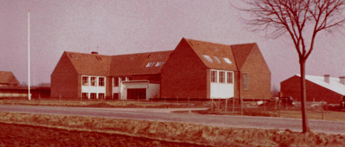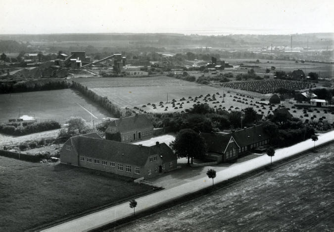 Knudsker Skole med blik mod granitværket hvor Degneskolen lå.