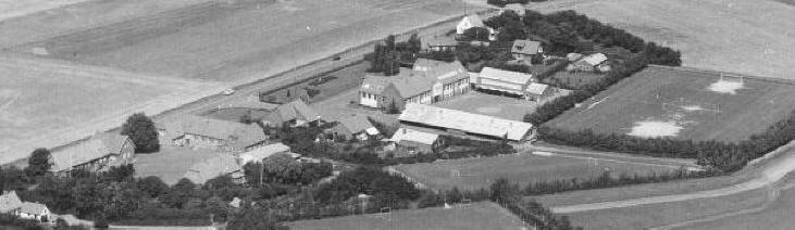 Den gamle skole ligger til venstre mens den nye med tilbygninger og idrætsanlæg