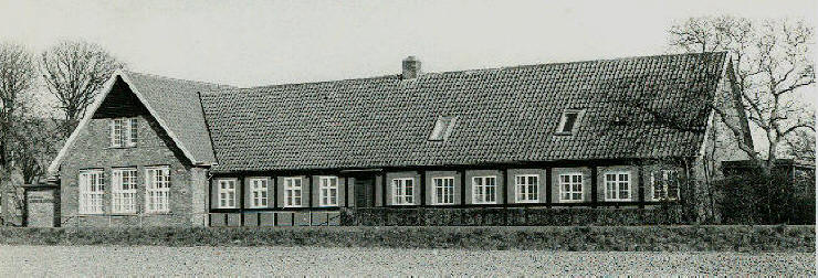 I bygningen til venstre gik de store, til venstre for døren boede lærer Madsen,